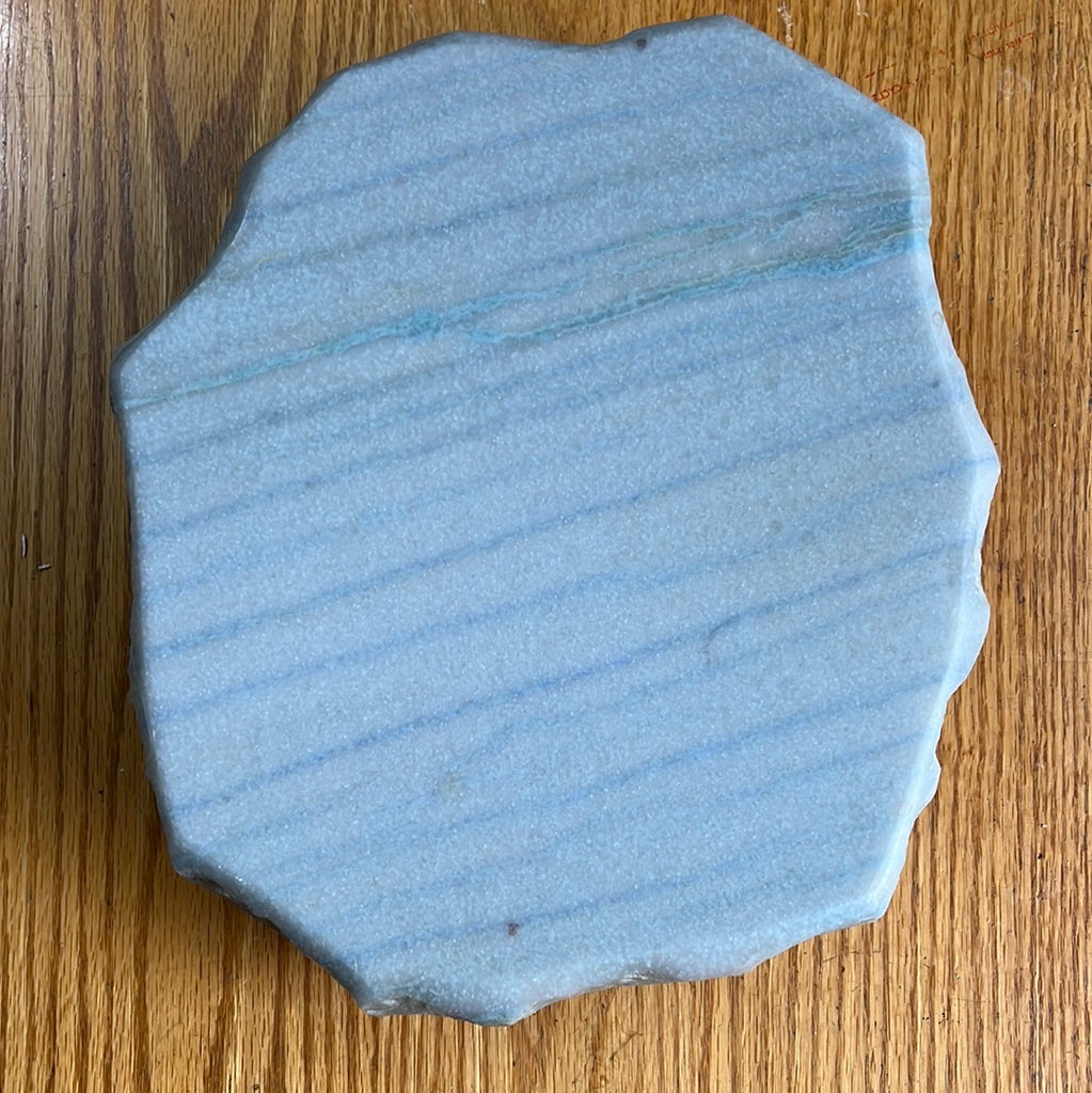 A beautiful, small unique blueish granite Lazy Susan… This is a high end glacier stone… It is a lighter blue and cream with blue veins in it very stunning and rare.
